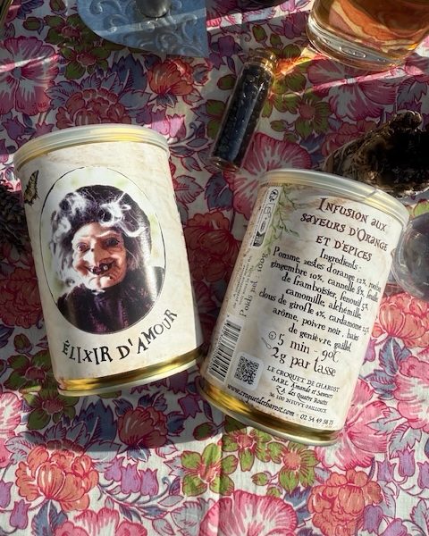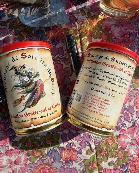 Attention les petits Moldu. Ce breuvage est à consommer sans modération ! Ingrédients: Cynorhodon (églantier) 63%, hibiscus, cerises(10%), arôme, pétales de fleurs(bleuet, souci, rose).